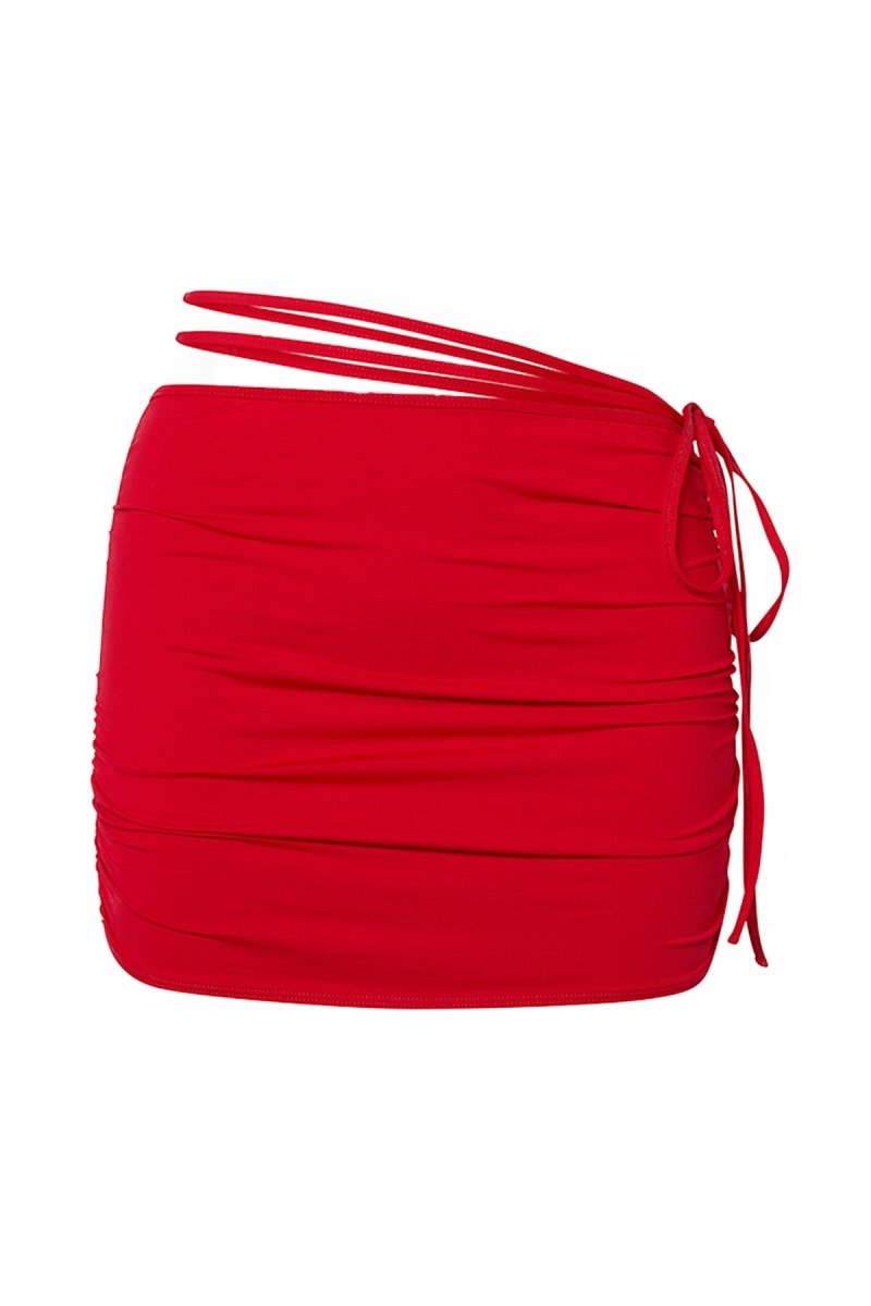 This pareo is made with premium quality fabric, it’s tested against sea salt, wear marks and stretching, and is super tan-line friendly. The Crime skirt has an elasticated fit with rushed seams at the side, it has two decorative straps around the waist. Complete the look with the Aerin top and Aerin bottom.